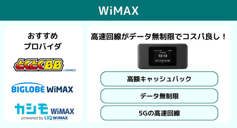 - 5 おすすめ1位:WiMAX | 5G回線でデータ使い放題!コスパよく契約できる
